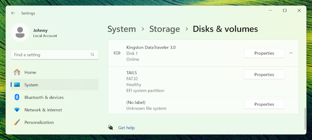 6. Identify the volume called TAILS, which has a FAT32 file system.