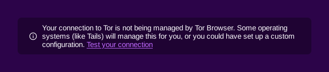 Hide the message "Your connection to Tor is not being managed by Tor Browser" in new tabs of Tor Browser. (#21215)